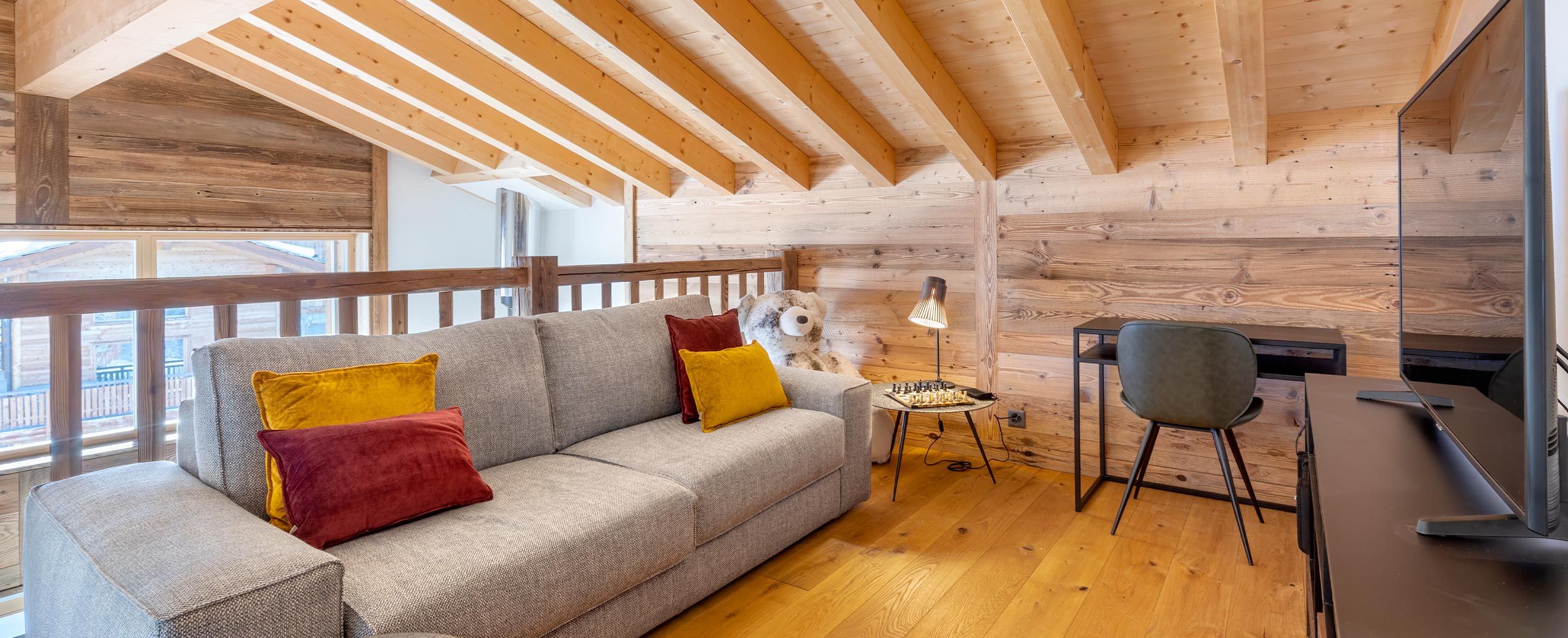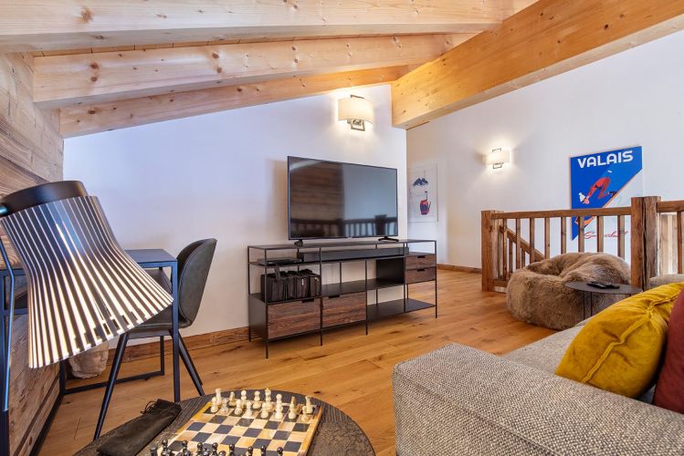 Le Penthouse on the Piste conjugue avec élégance le charme intemporel des chalets alpins et le raffinement du luxe moderne, pour une escapade en montagne hors du commun. Ce somptueux penthouse de 200 m² séduit par son atmosphère authentique et chaleureuse. Ses poutres apparentes, typiques des chalets traditionnels, et sa cheminée accueillante invitent à la convivialité, tandis que de vastes baies vitrées baignent les espaces de lumière naturelle et dévoilent un panorama à couper le souffle sur les cimes enneigées.